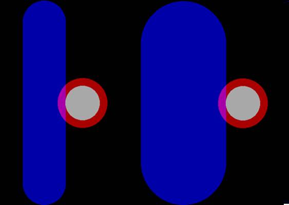 帶狀光源的寬度和角膜直徑、瞳孔直徑的比例是依據真實尺寸去描繪的。左圖是平行光源,右圖是發散光源和角膜大小的實際比例。