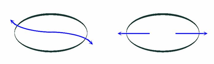 exotropia)。我的臨床觀察發現感覺性外斜視病人向左、向右看的時候,不好的一眼(如下圖的右眼)會有如圖的軌跡。我的解釋是“雙眼上斜肌亢進”。向左看的時候右眼向下,是典型的“右上斜肌亢進”, 向右看的時後因為右眼視力差,病人仍然用左眼注視,“左上斜肌亢進”反而將右眼推向了上方。
