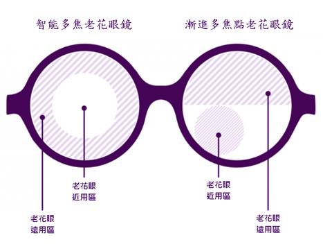 * 智能多焦老花鏡片通常不是跨越全區、由無窮遠到30cm都可以使用。而是大約1米到30公分的距離可以看得清楚。類似於漸進多焦老花鏡片的辦公室鏡片(office lens),上方add+1看中距離,下方add+3看近距離。