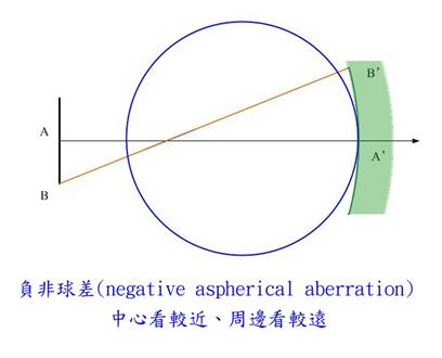 spherical aberration);將中央聚焦力較高、周邊聚焦力較低,和原始球鏡球差相反方向的稱為負球差(negative