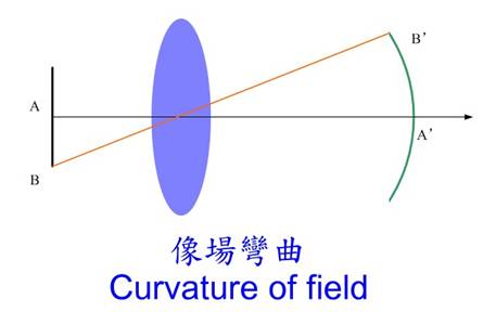 hyperopia shift),我認為那是另外一種像差 – 像場彎曲(Curvature of field)的表現(如圖),像場彎曲的曲率小於眼球後極部的曲率,因此成像在周邊網膜之後。