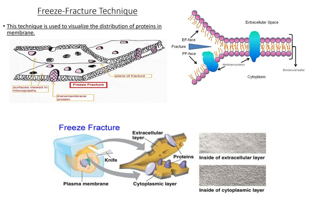 fracture) (見圖),可以以電子顯微鏡觀察細胞膜上的蛋白質分子(transmembrane