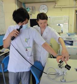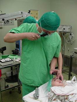 小兒眼科學檢查使用直接眼底鏡做Hirschberg角膜光反射斜視檢查、配鏡時兩眼間距的測量等等,臨床經驗發現間接眼底鏡的眼底檢查,包含眼底旋位檢查,如果也用直接眼底鏡作為光源是非常方便的(見圖)。
