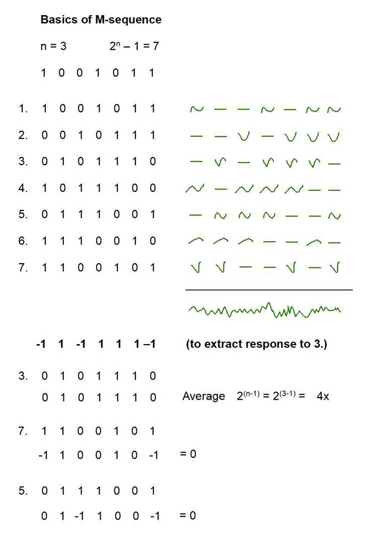 input simultaneously according to these 7 M-sequences, and the 7 responses are