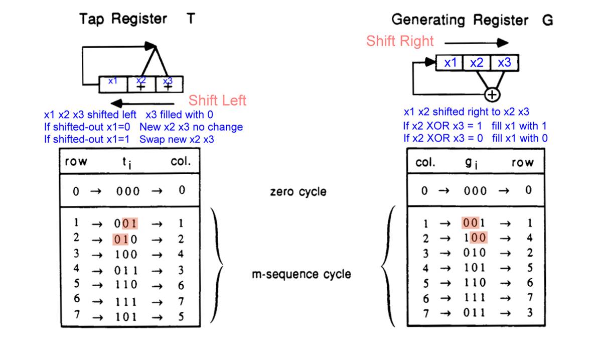 M-sequence of n = 3 has 23 - 1 = 7 0¡¦s and 1¡¦s.