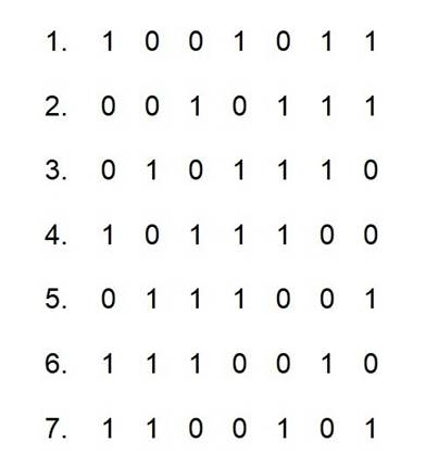 0 1 1 1 0 0 0 1 0 0 0 1 1 1 0 0 0 1 0 1