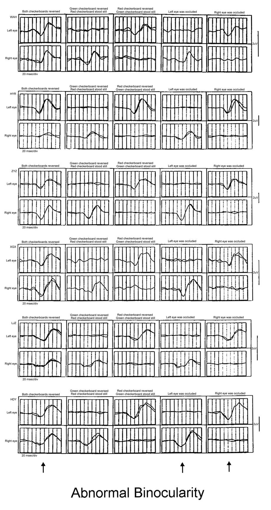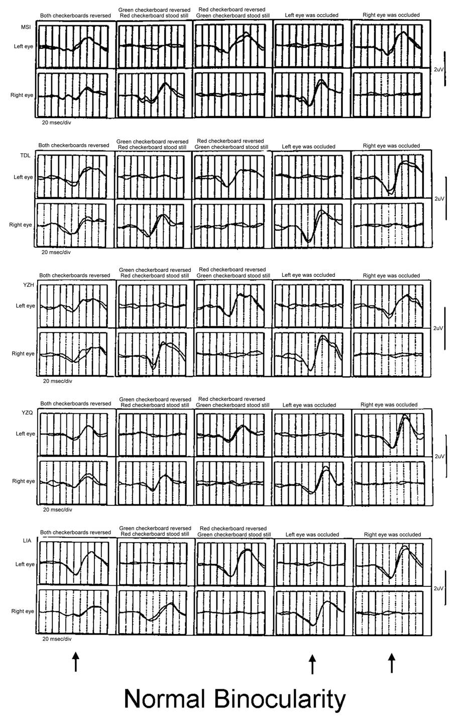 vision who failed the stereopsis test. The amplitudes of the simultaneous