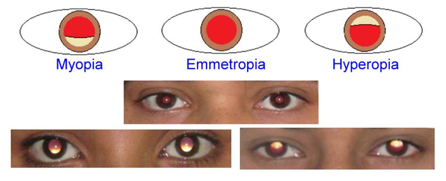 refractive errors show no pupillary reflection. In high myopia, the pupillary