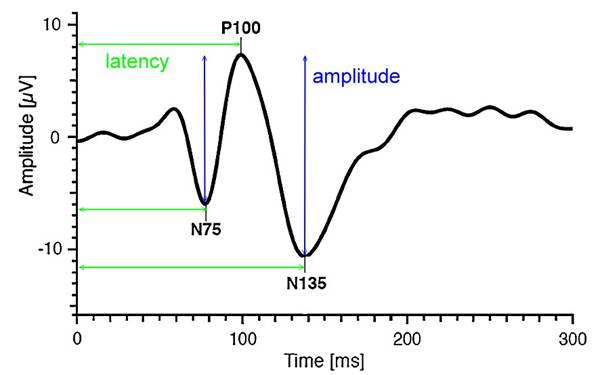 (N75-P100-N135) waveform (see figure) is analyzed, with the latency of the