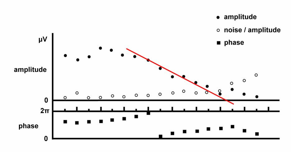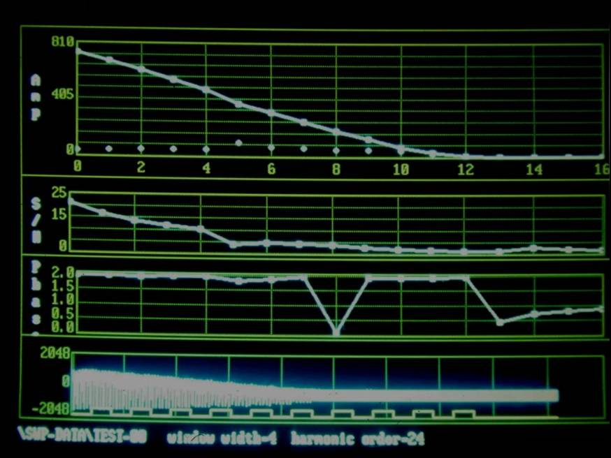 ¥þ³¡10¬íªº¸£ªi¡A¨ú2¬í¬°¤@Ӱ϶ô ¡V 0¨ì2¬í¬°¤@Ӱ϶ô¡B0.5¨ì2.5¬í¬°¤@Ӱ϶ô¡B1¨ì3¬í¬°¤@Ӱ϶ô¡K¡K7.5¨ì9.5¬í¬°¤@Ӱ϶ô¡B8¨ì10¬í¬°¤@Ӱ϶ô¡A¤@¦@17Ӱ϶ô¡Cµû¦ôµø¤Oªº¬]¯¾¦pªG¥H6Hz(12 reversals/sec)¤ÏÂà¡A2¬íªº°Ï¶ô¸Ì¦³24Ó¤ÏÂà¡A©â¨ú³o2¬í¸£ªiªº24¿ÀW(24th harmonic)ªº®¶´T(amplitude)©M¬Û¦ì(phase)¡C¦P®É©â¨ú¨C¤@°Ï¶ô23¿ÀW(23rd harmonic)©M25¿ÀW(25th harmonic)ªº®¶´T¡A¨âªÌªº¥§¡È·í§@Âø°T(noise)¡A¾¸°T¤ñ§C¡Aªí¥Ü24¿ÀW¤W½T¹ê¬O»¤µo¦Ó¨Óªº¹q¦ì(¨£¹Ï)¡C