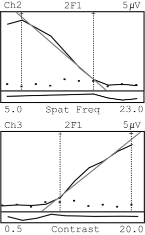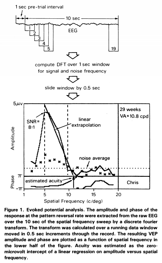 ¬°¤F¥H¹q¥Í²zªº¤èªk§Ö³tµû¦ôµøÄ±¥\¯à¡A¦b1970¡B1980¦~¥N¡ADr. Christopher Tyler©MDr. Anthony Norcia¶}µo¤F±½±°µø»¤µo¹q¦ì(Sweep VEP)ªº¨t²Î¡A¦ôp¤p¨àµø¤O(visual acuity)¡B¹ï¤ñ±Ó·P«×(contrast
